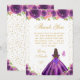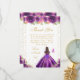 This elegant and glamorous birthday thank you card features a beautiful princess with brunette hair and fair skin in a dark purple ball gown. The text combines handwritten script and modern sans serif fonts for a classy and sophisticated look. The floral arrangements, butterflies and gold confetti create the perfect blend of rustic and chic.