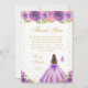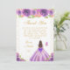 Cartão De Agradecimento Purple Floral Brunette Hair Princess Birthday Part