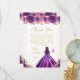 This elegant and glamorous birthday thank you card features a beautiful princess with dark hair and dark skin in a dark purple ball gown. The text combines handwritten script and modern sans serif fonts for a classy and sophisticated look. The floral arrangements, butterflies and gold confetti create the perfect blend of rustic and chic.