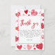 Esses adoráveis cartões de agradecimento para chã de bebê, projetados para combinar com o convite de chã de bebê 'querido'. O design apresenta corações de aquarela doces de diferentes padrões e tamanhos com uma mensagem de agradecimento elegante.
