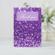 Centro de lavanda elegante com uma falso estrutura de brilho roxo. Rhinestone púrpura falso joalhou um gráfico de acento tiara atrás. Personalize com sua própria mensagem para a família e os amigos. Um perfeito "Obrigado" por todos os seus convidados Quinceañera. Absolutamente espantoso.