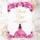 Cartão De Agradecimento Quinceañera Floral Princesa Rosa Quente