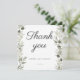 Um belamente simples cartões de agradecimentos de casamento, com galhos de oliveiras pintados à mão e flores macias ao longo dos lados. Os tons verdes e cremes silenciosos criam um aspecto calmo e natural que complementa perfeitamente o convite de casamento correspondente.
