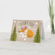 Um cartões de agradecimentos que ilustra um salto de raposa em um galho de árvore entre duas árvores verdes e rodeadas por estrelas. O plano de fundo é o estoque de cartões inspirado. Os convites para chuveiros de bebês combinam com os pontos de coordenação estão disponíveis na Paperie de Jill.