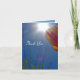 Uma adorável fotografia aprimorada de pétalas de tulipas vermelhas e amarelas e folhagem verde tirada de um ponto de vista baixo, com céu azul e sol brilhante acima. Por dentro é azul.