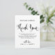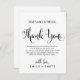 Este cartão de agradecimento recepção caligrafia sulista é perfeito para um casamento moderno. O design minimalista apresenta tipografia preta e branca rústica, mas elegante, com floreios caprichosos para um visual simples. Coloque esses cartões na mesa para cada um dos seus convidados na recepção do seu casamento. Personalize o cartão com seus nomes e uma mensagem especial de agradecimento.