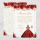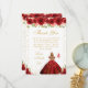 This elegant and glamorous birthday thank you card features a beautiful princess with blonde hair and fair skin in a red ball gown. The text combines handwritten script and modern sans serif fonts for a classy and sophisticated look. The floral arrangements, butterflies and gold confetti create the perfect blend of rustic and chic.