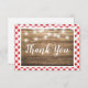 Red Gingham Check Xadrez Rustic Wood Event Chá Obrigado, bilhete.