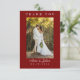 Red Simple Photo Wedding Thank You Card with back note, two photos.
