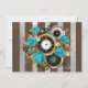 Cartão De Agradecimento Relógio e Rosas de Turquesa em Striping