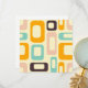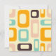 Retro geometric pattern with overlapping rectangles and ovals in orange, teal, pink, and brown on a light beige background, creating a playful, vibrant mood.