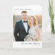 This wedding thank you card features a romantic and elegant design with a portrait-oriented layout, showcasing two individuals in formal attire against a softly blurred outdoor backdrop. The color palette includes soft pastels like light pinks and creams, complemented by the dark navy of one individual's tuxedo, creating a warm and inviting atmosphere. The top section displays the phrase "LOVE AND THANKS" in an uppercase serif font, while the bottom features customizable text in an elegant script font, allowing for personalization. The overall style is celebratory and heartfelt, perfect for expressing gratitude after a special occasion.