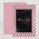 Cartão de agradecimento rosa com pontos para o café da manhã. Para casamentos, chá de noiva, despedidas de solteira, aniversários, etc., personalize esta linda coleção de bolinhas pretas para se adequar ao seu evento.