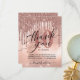 Cartões de agradecimentos de aniversário de 40 anos moderno. O design apresenta o rosa dourado faux glitter & foil background com gotas brilhantes e script de tipografia ''obrigado you'' na frente e quarenta no verso. Personalize com seu obrigado sua mensagem, data e um nome.