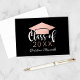 Graduação personalizada, obrigado a observar placas um fundo preto (pode ser personalizado) com na moda e rosa dourado / cor-de-rosa-pincel e design de script de caligrafia branco "Classe 2023" com boné de formando e nome de formando no roteiro moderno.