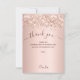 Um fundo rosa dourado, decorado com confetes. Grande letra manuscrita com floreios e o texto: Obrigado. Personalize e adicione sua nota de agradecimento e nome.