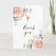 Fundo branco. rosa de ouro floral e eucalipto verde. Obrigado por ser escrito com uma fonte de estilo escrita à mão. Dentro: Um grande dentro de fotos e sua nota de agradecimento. Traseiro: uma foto de segundo.