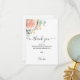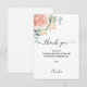 Um fundo branco, decorado com uma rosa rosa dourada, flor e eucalipto verde. Grande letra manuscrita com floreios e o texto: Obrigado. Personalize e adicione seu bilhete de agradecimento e nome.