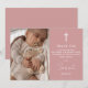 Cartão De Agradecimento Rosa Pó Moderno Script Foto Batismo Batizado