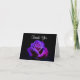 Um cartões de agradecimentos elegante. Uma bela fotografia de um rosa púrpura, azul e cor-de-rosa sobre um fundo preto iluminado por um holofote de solteiro criando uma iluminação espetacular que realmente mostra a beleza desta flor, coberta por pequenas gotículas de água delicadas.