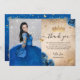 Crie seus próprios cartões de agradecimento fotográficos bonitos e elegantes projetando em um modelo DIY único que pode ser facilmente personalizado com uma imagem e texto personalizados. A arte botânica vintage de Raphaela Wilson destaca rosas em aquarela azul com sotaques metálicos dourados falsos bonitos, uma coroa de princesa / tiara e confete cintilante de borboleta. Esses cartões de agradecimento planos florais personalizados podem ser usados para mostrar seu amor sincero e agradecimento aos convidados de casamentos azul real, uma quinceañera dourada, festa de aniversário de 16 anos, chá de bebê da princesa do conto de fadas e chá de noiva (assim como outras ocasiões especiais). Você pode personalizar ainda mais este design vintage para revelar outras opções criativas divertidas (ou seja, um papel pergaminho mais leve ou selecione um fundo branco combinado com a mancha de aquarela azul). Quer um estilo de tipografia diferente do mostrado na caligrafia moderna? Sinta-se à vontade para mudar o estilo das fontes e certifique-se de adicionar uma foto elegante dos meus quince anos / foto de noivado. Categoria: cartões de agradecimento de casamento com foto vintage / papelaria com borboletas e flores. Paleta de cores do tema da festa quinceanera azul real e dourado: azul real escuro,