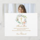 Com uma delicada grinalda floral em aquarela, este cartão de agradecimento de primeira comunhão elegante pode ser personalizado com sua mensagem especial de agradecimento. O verso apresenta uma foto especial. Desenhado por Thisisnotme©