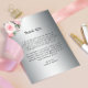 Expresse sua sincera gratidão à sua família e amigos com nossas belas Rosas Rosa Clássicas no Cartões de agradecimentos Silver Wedding, um símbolo radiante de apreciação que espelha a elegância de seu dia especial. A carta apresenta um cenário metálico lustroso de prata, evocando uma sensação de sofisticação e de eterno que captura perfeitamente a essência de sua celebração. Na vanguarda desta carta encantadora está um buquê cativante de rosas cor-de-rosa delicadas, simbolizando a beleza e a graça que floresceram no dia do seu casamento. O arranjo encantador não só adiciona um toque de romance, como também serve como um lembrete visual do amor e alegria compartilhados com seus queridos convidados. À medida que seus entes queridos receberem este tom pensativo, eles serão saudados pelo brilho de prata e as rosas suaves, convidando matizes de rosas cor-de-rosa. A combinação do pano de fundo metálico com o centro floral cria uma obra-prima visual harmoniosa, ecoando a elegância e o charme de sua união. Sua mensagem personalizada de gratidão será transmitida com sinceridade e calor. Seja uma nota sentida, uma memória apreciada, ou um simples "obrigado", esta carta se torna uma expressão tangível do amor e gratidão que envolve seu dia especial.