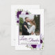 Este belo casamento bócio rústico, obrigado cartões, mostra sua foto cercada por um roxo pintado à mão de ameixa e lavanda colorida junto com folhas de eucalipto e verde. A legenda diz: Amor e Obrigados, com seus nomes abaixo. O verso tem espaço para uma breve nota personalizada de agradecimento, assim como um código QR apontando seus convidados para a galeria de fotos online onde eles podem ver e/ou carregar fotos do evento. Simples e elegante, este cartões de agradecimentos é a maneira perfeita de deixar seus amigos e família saberem o quanto você aprecia o seu amor e apoio.