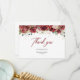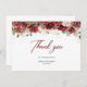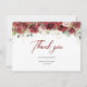 O design moderno para cartão de agradecimento apresenta rosas de cor burgundy e rosadas em aquarela flores mistas de eucalipto verdejante folhagem mista faíscas douradas e elegantes tecidas em moldura dourada.