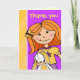 Cartão de agradecimento moderno e fofo para festa de meninas. Menina abraçando seu coelho branco sortudo. Personalize este cartão com a mensagem de agradecimento de sua escolha. Design original de Sarah Trett.