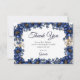 Cartão De Agradecimento Royal Blue Golden Tiara Floral Quinceañera