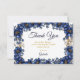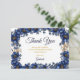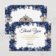 Cartão De Agradecimento Royal Blue Golden Tiara Floral Quinceañera