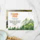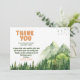 Diga "obrigado você" em estilo com este charmoso cartão de obrigado rústico! Apresentando uma exuberante floresta aquática e design de montanha na frente, mais espaço no verso para uma foto personalizada do seu pequeno aventureiro. Perfeito por compartilhar gratidão após uma primeira festa de aniversário com uma torção divertida e estranha!
