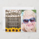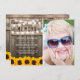 Enviar uma nota de agradecimento funerário é uma maneira simples de obrigado daqueles que mostraram conforto durante seu tempo de luto. Este cartão de compaixão caipira apresenta um fundo de madeira rústico, uma foto da pessoa que faleceu, girassóis amarelos brilhantes, luzes de cordas, o ditado "In Loving Memory", seu nome, datas de nascimento/morte, e uma nota personalizada de agradecimento.