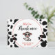 obrigado de vaca sagrada para vir ao meu cartão de festa com uma vaca fofa pintada digitalmente e um padrão de cowprint combinando cor rosa-coral, preto e branco. Desenhado e pintado por @rodicadraws.