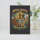 Raised fists of many identities surround the scales of justice, expressing a powerful call for equality, unity, and collective freedom.