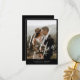 Elegante, romântico, chic moderno, manuscrito branco escrito com letra manuscrita modelo de cartões de agradecimentos preto de casamento com duas fotos, seu texto personalizado e assinatura.