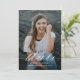 Nosso Simple Calliographic Graduation Two Photo Cartões de agradecimentos apresenta uma grande foto frontal de cheio com uma cobertura de script de caligrafia e uma segunda foto no verso junto com a mensagem do seu obrigado. Os elementos traseiros podem ser removidos clicando no botão para editar mais detalhes.