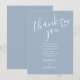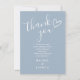 Um cartão de agradecimento de chuveta de bebê moderno e minimalista personalizado com sua mensagem e nomes, apresentando um coração desenhado à mão e tipografia estilosa em um fundo azul empoeirado. Criado por Thisisnotme