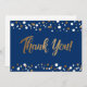 Cartão De Agradecimento Script moderno Blue Dourado Confetti Graduação