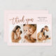 Este moderno cartões de agradecimentos fotográfico apresenta o obrigado de guião manuscrito rosa gold e os detalhes de nascimento na frente. O verso inclui um obrigado que você envia e uma assinatura de família. Clique no botão editar para personalizar este design com suas fotos e detalhes.