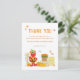 Celebre o dia especial do seu pequeno com este cartão de agradecimento temático de outono festivo com o Elmo vestido com um adorável traje de abóbora de jack-o'-lantern. Rodeado por folhas de outono, fardos de feno, abóboras e uma cesta de flores de outono, Elmo está contra um fundo branco suave com um texto alegre "Obrigado" laranja no topo. A mensagem expressa gratidão pelos presentes e celebra a alegria de passar tempo juntos. A parte de trás do cartão continua o tema de outono com um charmoso padrão de folhas espalhadas. Perfeito para uma festa de aniversário de outono e personalizado com o nome da sua criança.