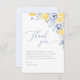 A fresh and elegant thank you card featuring soft watercolor lemons, dusty blue florals, and graceful calligraphy. Perfect for thanking guests after a summer or Mediterranean-inspired bridal shower. Clean white background for a timeless and refined look.