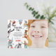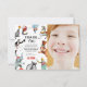 Cartão de agradecimento de foto de festa de aniversário com tema de circo vintage moderno. O design apresenta uma fotografia da criança aniversariante, com ilustrações de aquarela vintage de atos circenses! A mensagem de agradecimento é fácil de personalizar usando o modelo fornecido.