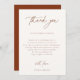 Desert Sienna, Recepção de casamento obrigado seu cartão de mesa. O Modelo fornece várias linhas para a mensagem do obrigado personalizado. Recursos, tipografia colorida siena queimada em fundo bege arenoso com cores sienna correspondentes.