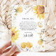 Crie um cartão de agradecimento de simpatia floral de girassol impressionante com este modelo rústico, apresentando belos girassóis amarelos em aquarela e folhagens de prado boêmio em um fundo branco clássico. O modelo elegante é projetado usando fontes serifadas itálicas e pode ser facilmente personalizado.