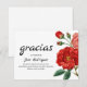 Cartão de agradecimento de funeral em espanhol para enviar à família e amigos para mostrar o seu apreço pelo seu amor e apoio durante o seu momento de luto. Com flores vermelhas em um fundo branco e texto preto, que pode ser personalizado.