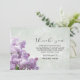 Elegante simpatia floral e obrigado memorial que você cartão com fotos. Fácil de editar/adicionar informações. Lavanda Flores lilás sobre fundo de mármore cinza. A parte traseira da carta tem espaço para adicionar fotos e data. Deem-nos durante ou enviem-nos depois do funeral. Faz com que o excelente continue. Adicione sua mensagem de obrigado. Veja outros como "na memória amorosa"