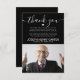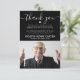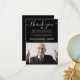Cartões de agradecimentos funerário moderno com uma fotografia tesourada da sua amada, um fundo negro que pode ser mudado para qualquer cor, as palavras "obrigado você" em uma letra elegante de escrita caligráfica, uma mensagem personalizada de apreciação, seu nome e datas.