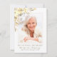 Obrigado sua família e amigos por comparecer ao funeral de seu ente querido e suas amáveis notas de simpatia com este elegante cartões de agradecimentos personalizado de fotos florais. Este elegante modelo de design apresenta uma foto na frente com um quadro fino e brando acentuado por rosas amarelas no canto superior esquerdo. Abaixo, no roteiro, lê-se "In Loving Memory" com um nome e data para personalizar. A parte de trás do cartão tem a sua obrigado, a sua mensagem, a sua assinatura e a sua citação para personalizar também com flores amarelas. Desenhado pela artista ©Susan Coffey.